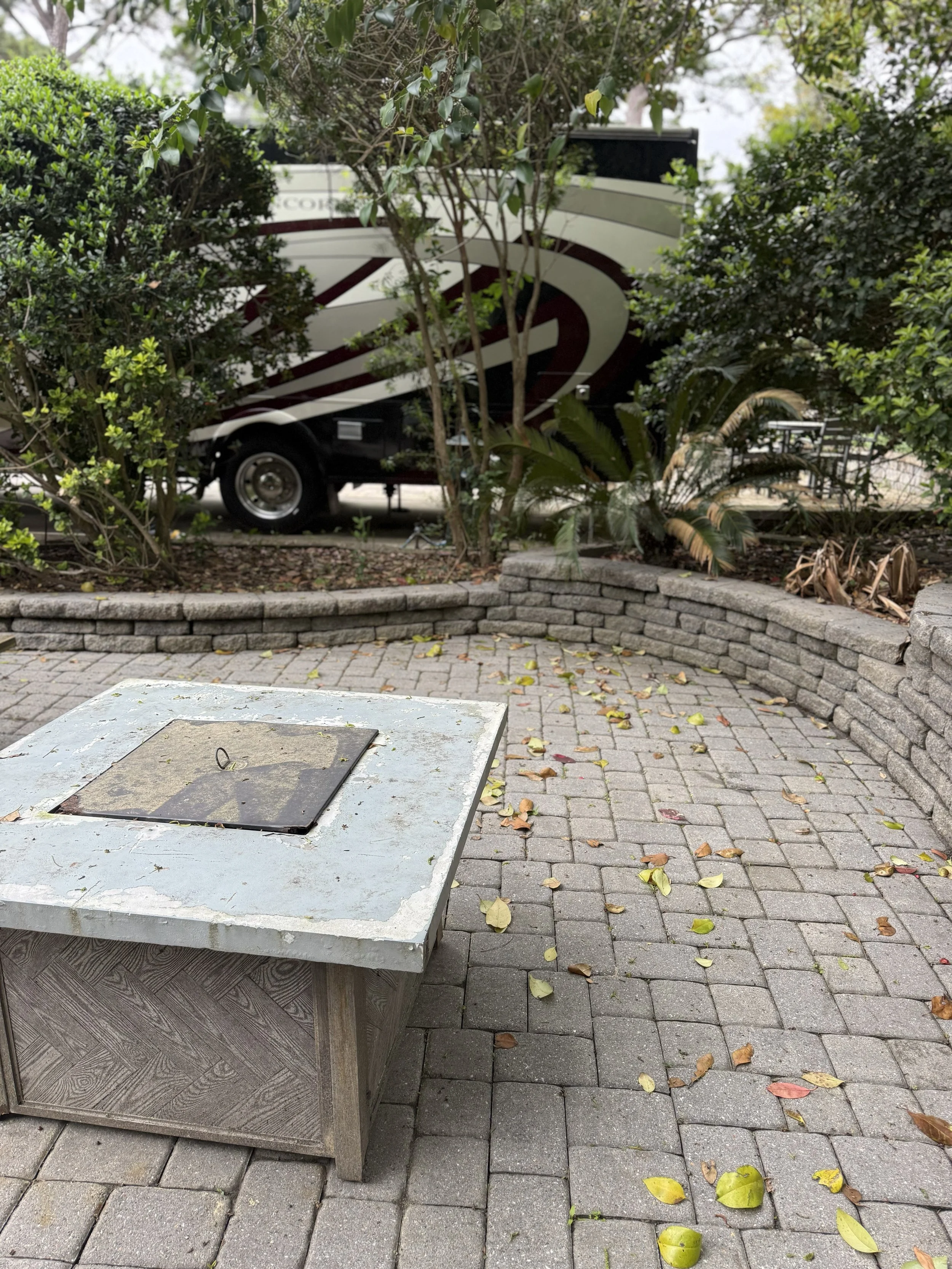 Located along the highly sought after berm area in the resort and lot features a new power pedestal, pavers, fire pit, and nice landscaping.